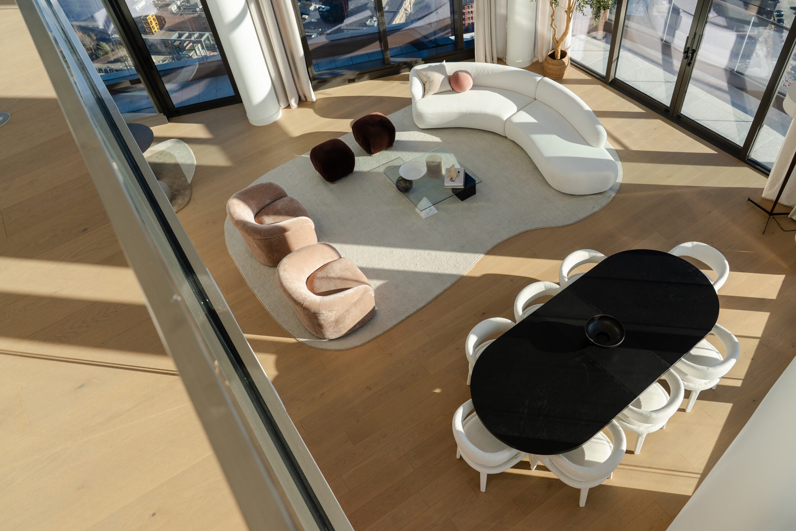 Living above a train station might not sound enticing, but the team has tried to make it so tenants won’t notice. To access the lobby, residents walk along a path with a view of a nearly one acre “sky park,” on the 11th floor, an effort to create a stark separation between home and the streets below.