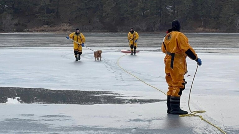 The 4-year-old golden retriever was stranded about 200 feet out from the shore of Goose Pond in Chatham, fire officials said.