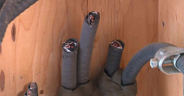 Louise Stewart, a senior manager with the St. Albert’s public works department, explained how the thieves cut and stole the copper power lines and main breaker panel as he showed the damage to a Global News crew on Thursday.