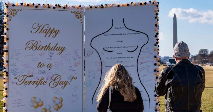 Trending,U.S. News,Donald Trump,Jeffrey EpsteinDonald Trump, Jeffrey Epstein, Trending, U.S. News#Giant #replica #Trumps #alleged #birthday #message #Epstein #appears #D.C1768939057