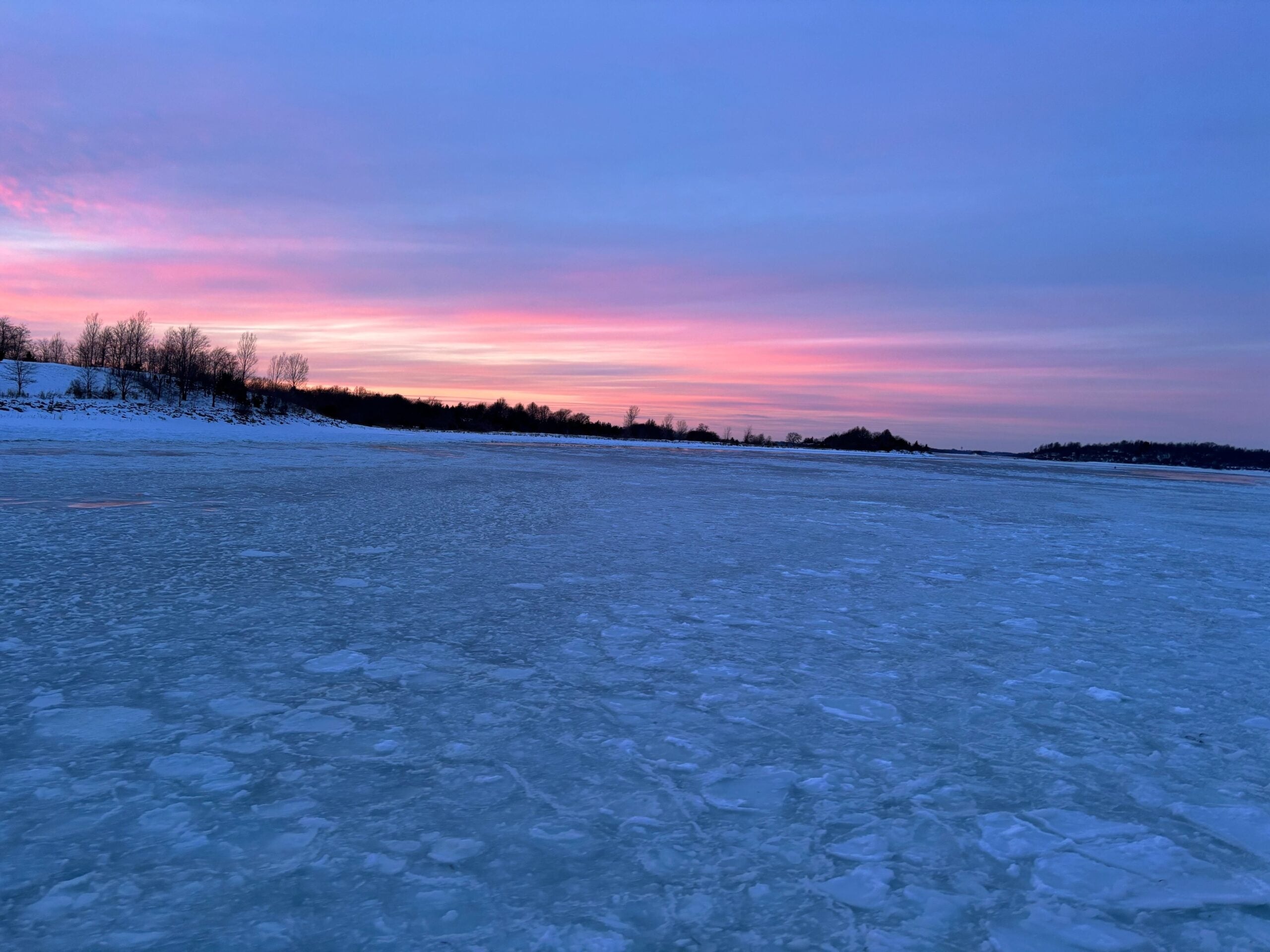 Yesterday, I opted for the 4:30 p.m return boat to avoid seeing the heart of the ocean in the dark. And I’m so glad I did, but not because it was scary. Quite the opposite: Traveling on a newer boat (a catamaran versus a monohull, I learned), the ride was completely smooth. Not white-knuckling my seat, I was able to take in just how stunning it was. As we approached our destination, the sky above the frozen water turned cotton candy pink, dotted with lights from people’s windows. All that was missing was a polar bear in the distance. As we got closer, the sunset intensified to a Lisa Frank hot pink, and passengers stepped out into the single-digit evening cold to take photos.